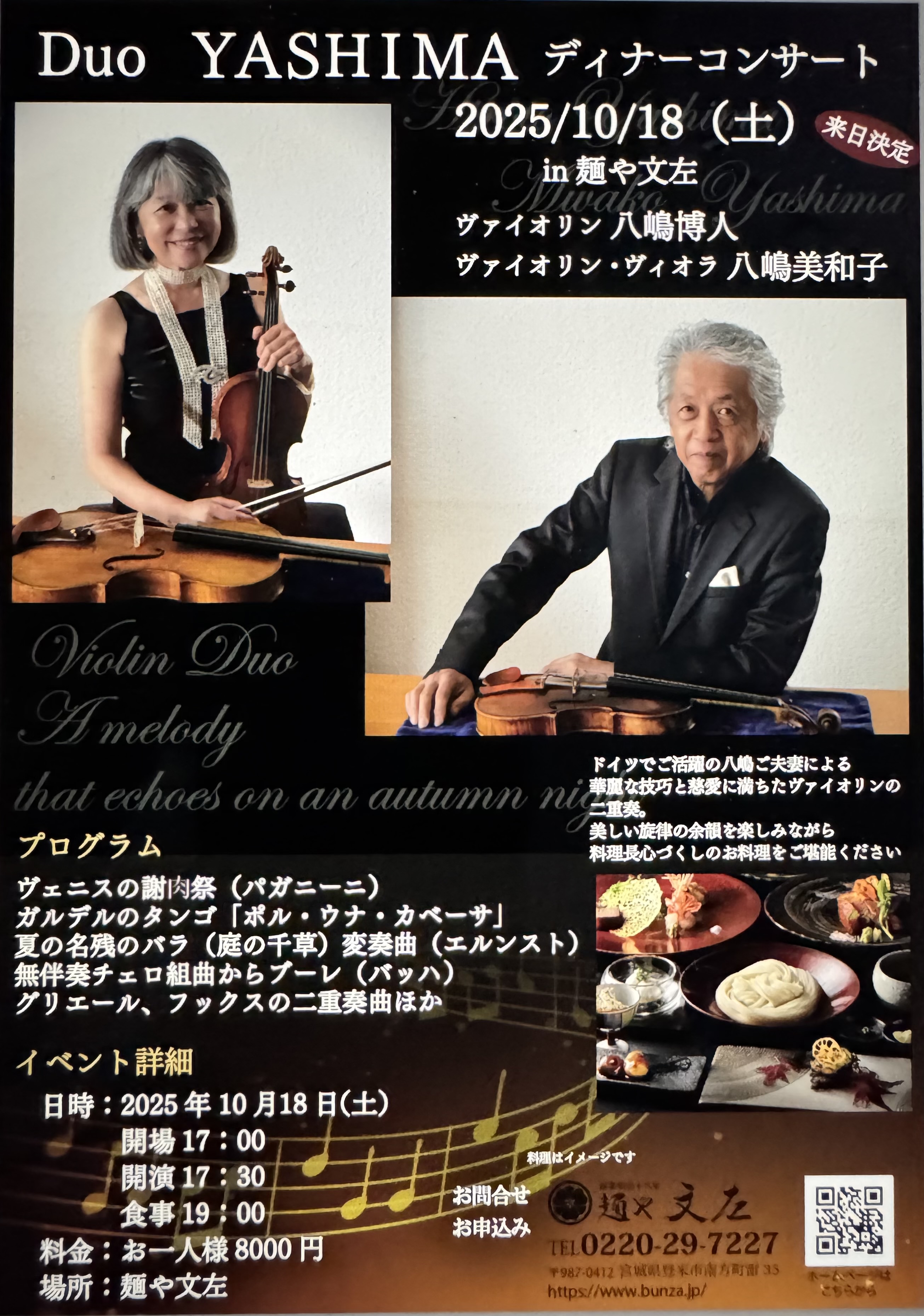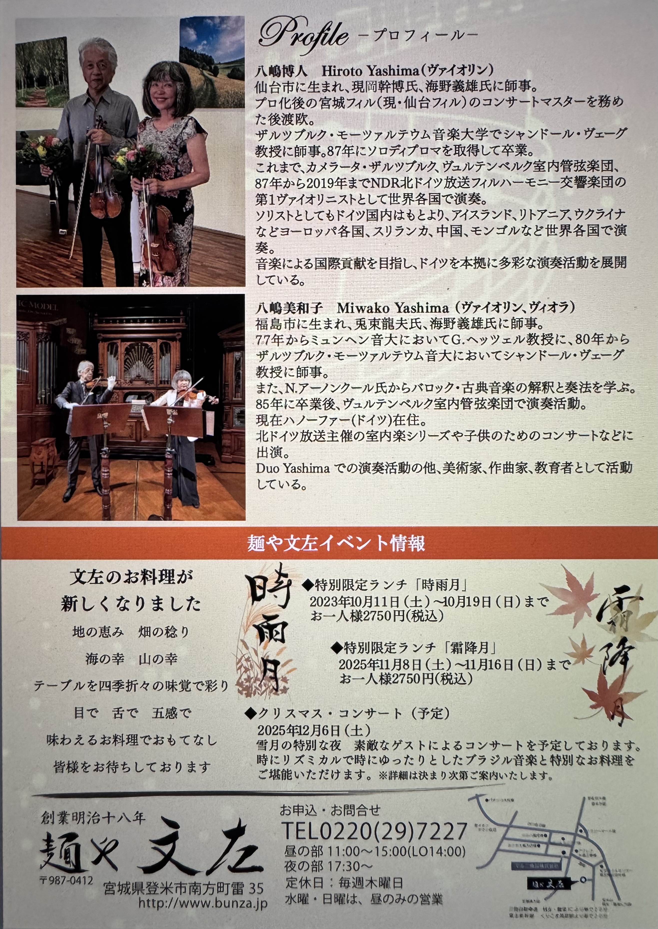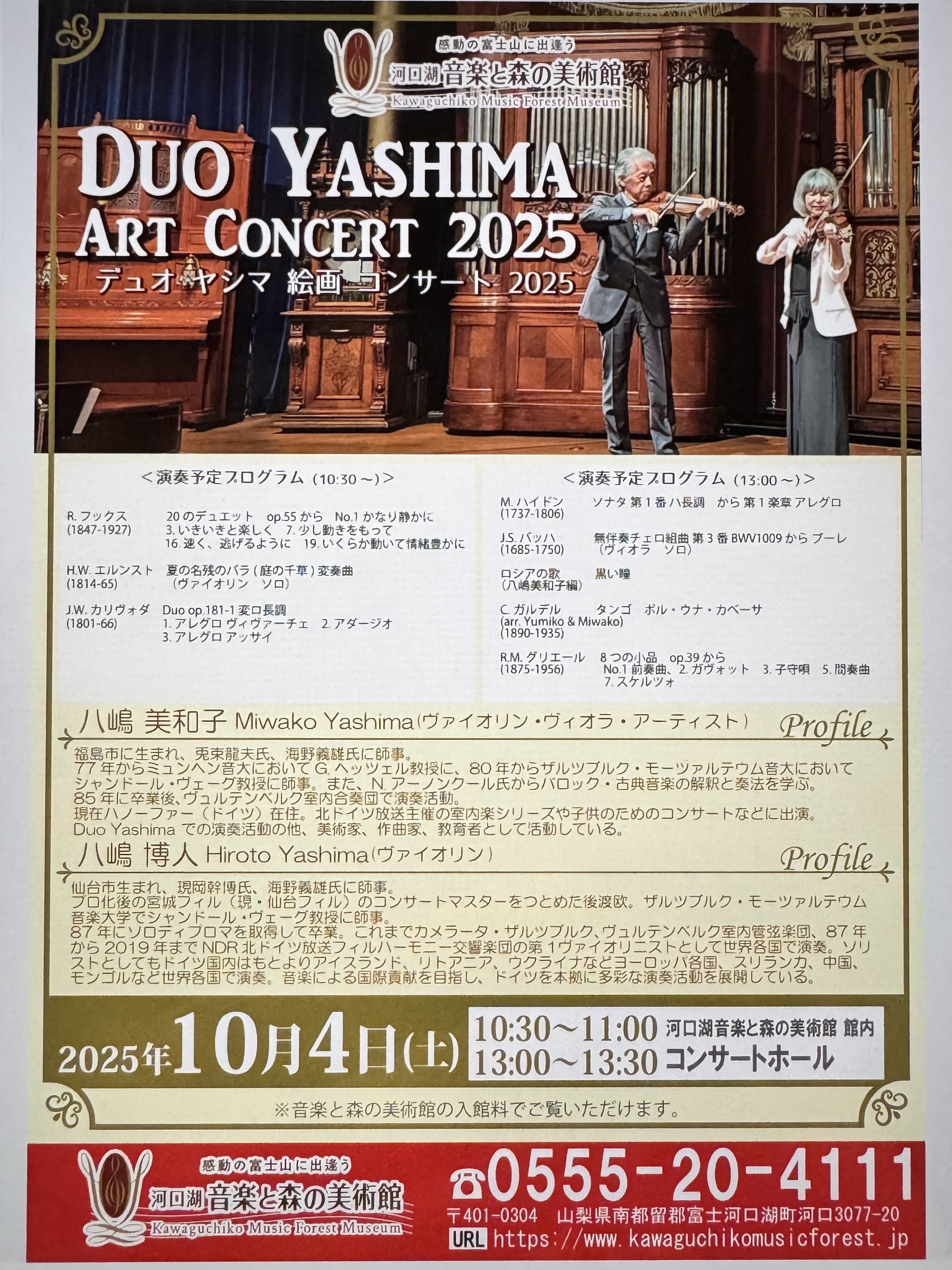 ヴァイオリン:八嶋博人 ヴァイオリン・ヴィオラ:八嶋美和子 | |||||||||||||||||||||||||||