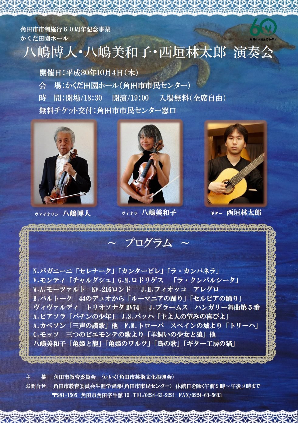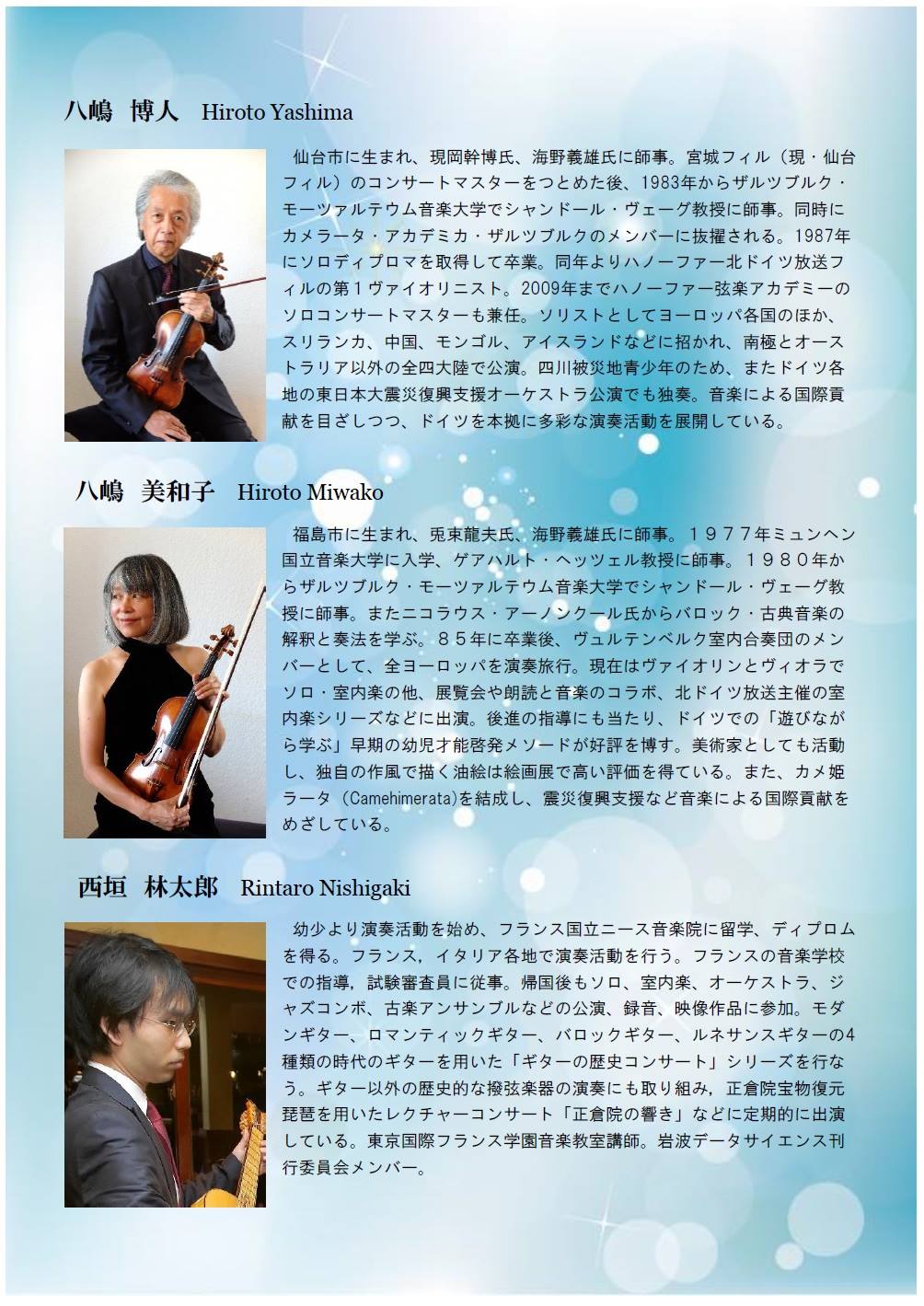 公演内容 八嶋博人 ・八嶋美和子・西垣林太郎 演奏会 チラシ表 チラシ裏
