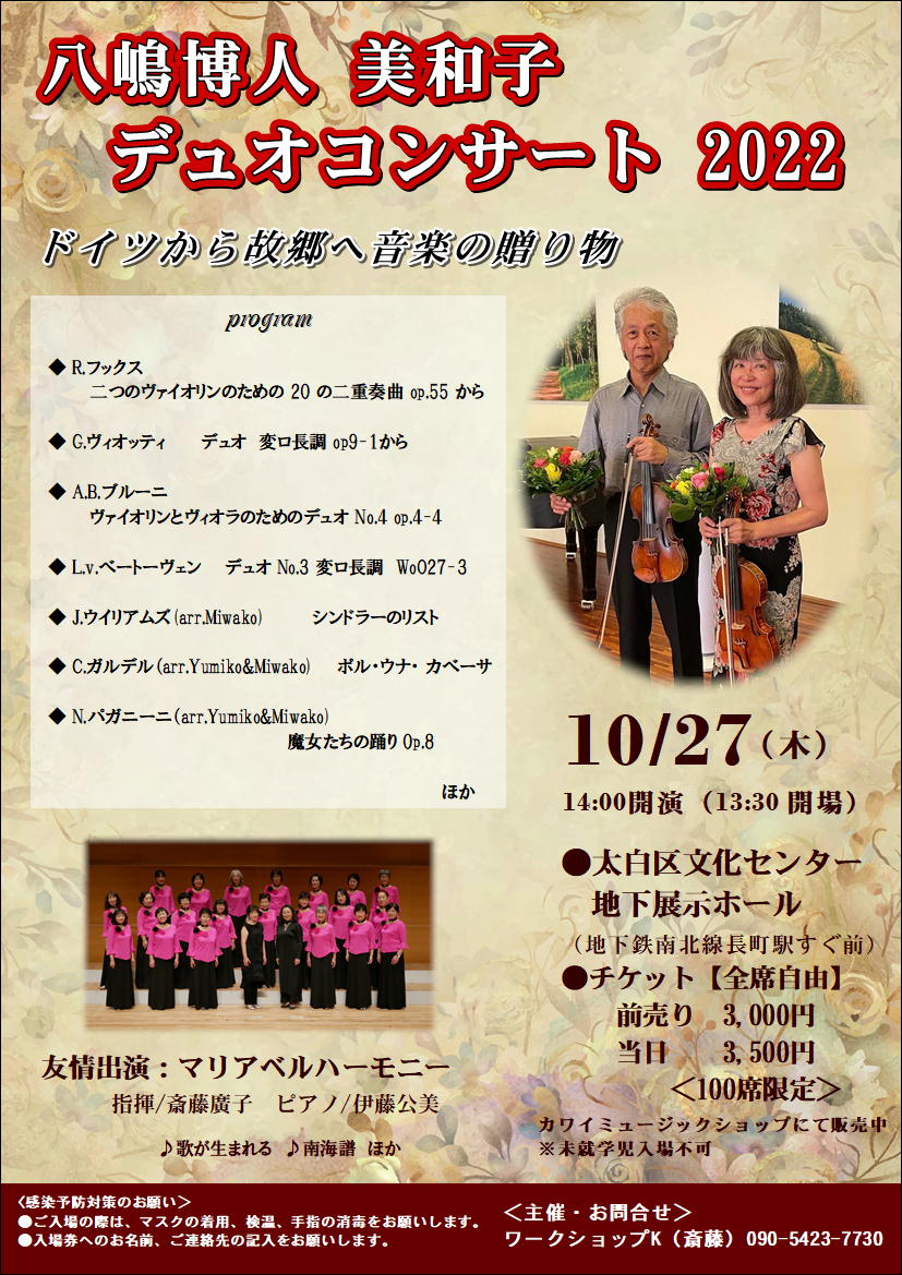 2022年10月27日(木)八嶋博人 美和子デュオコンサート 2022