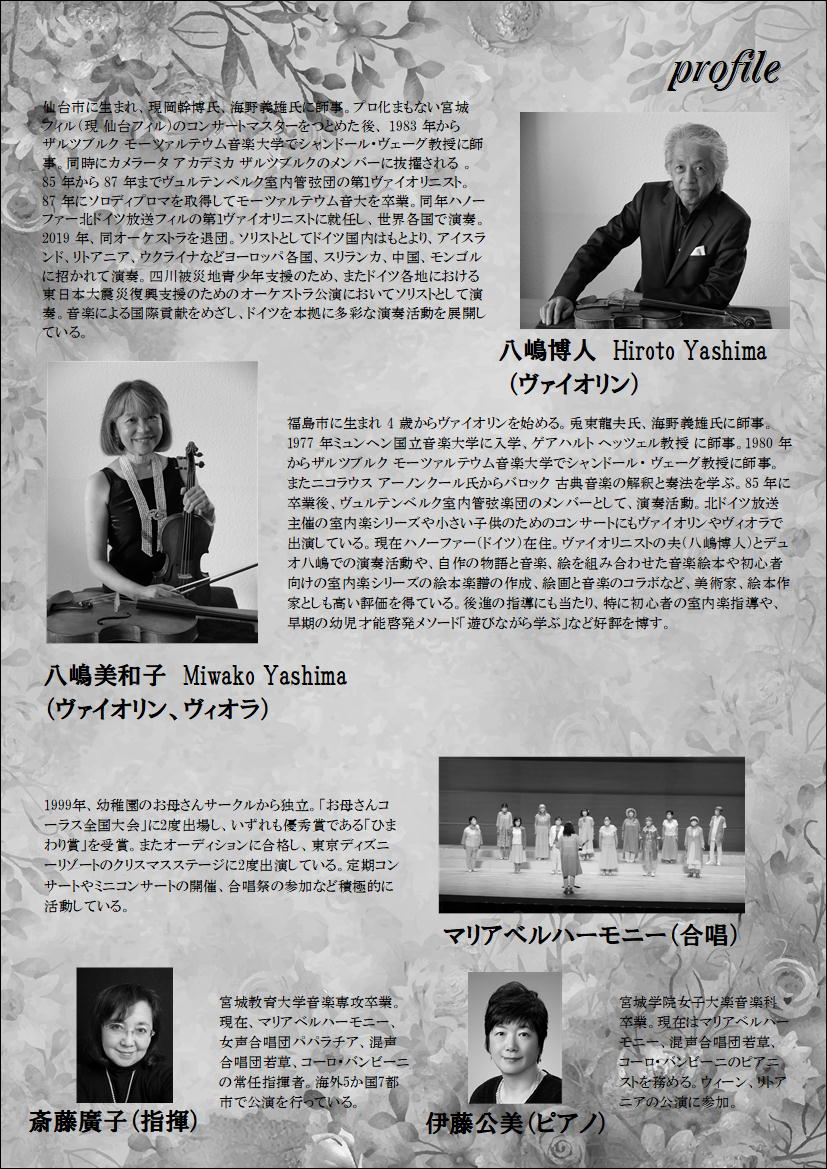 公演内容 八嶋博人 美和子デュオコンサート 2022 チラシ表 チラシ裏