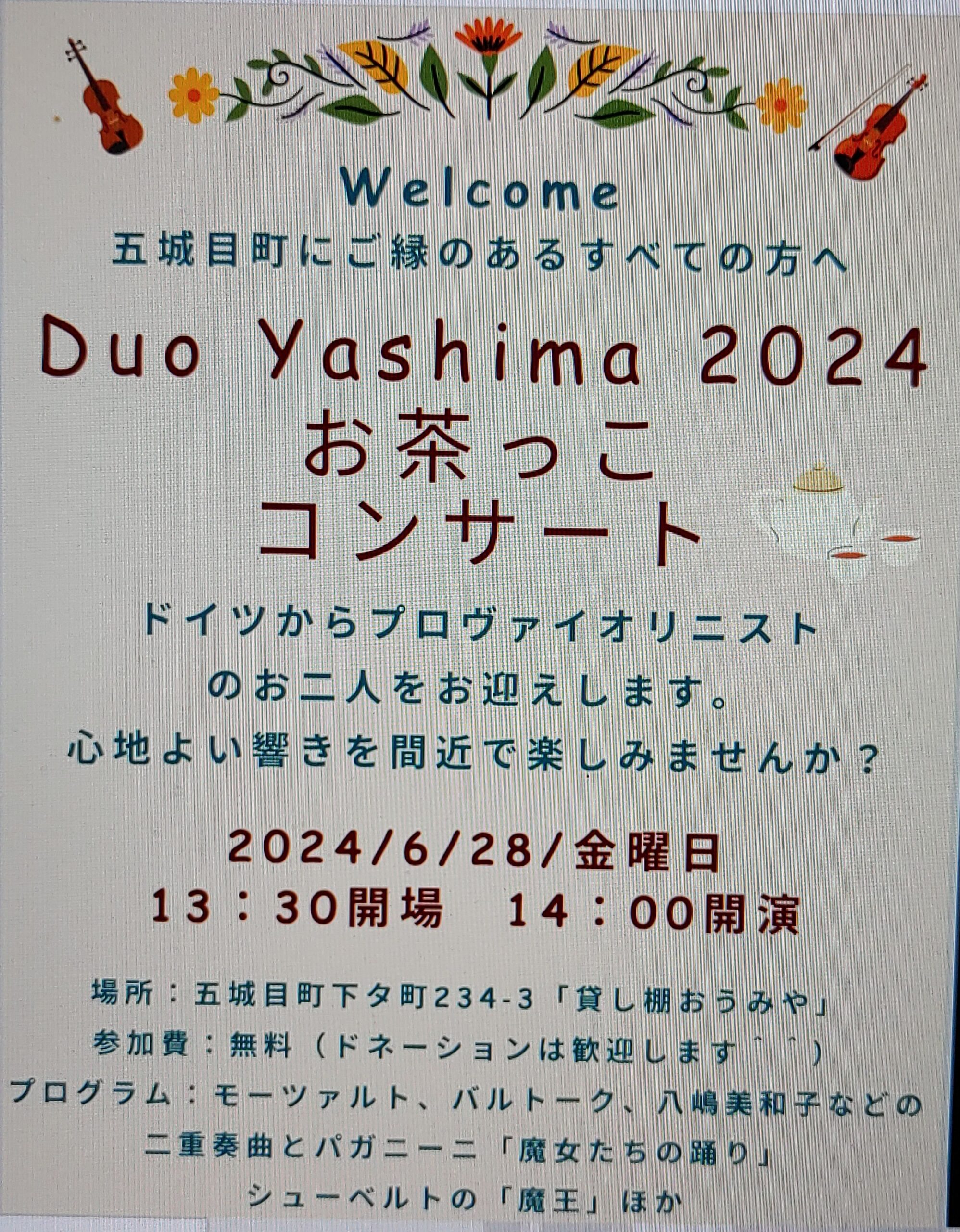 公演内容 Duo Yashima お茶っこコンサート チラシ表 チラシ裏