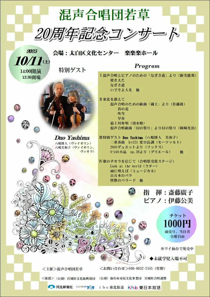 公演内容 混声合唱団若草20周年記念コンサートにゲスト出演 チラシ チラシ
